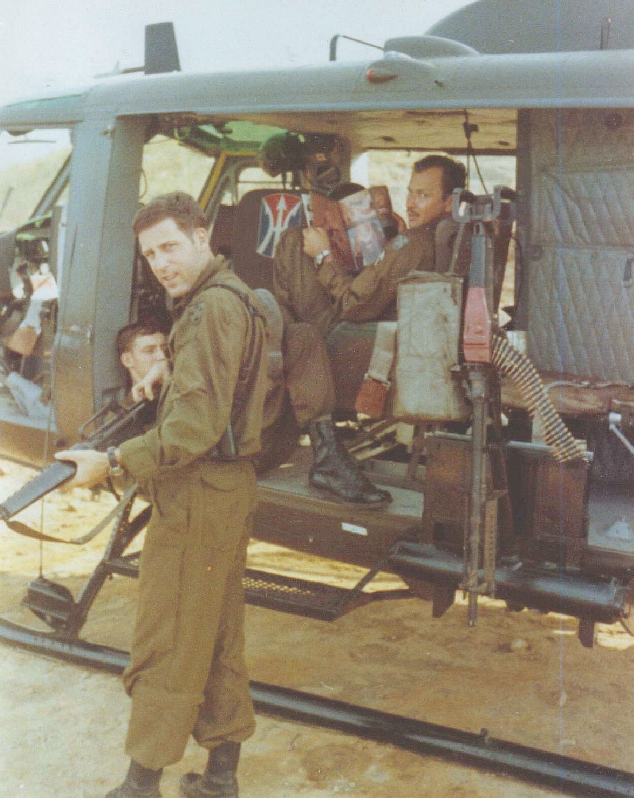 1970 photos of (l-r): CW2 Chuck Creamer 1970 visiting another Unit's Crew at Duc Pho and 1LT Dave