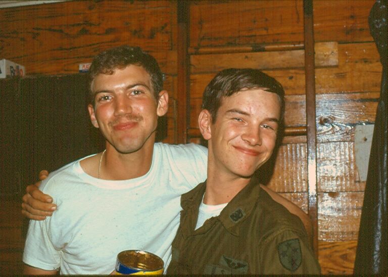 WO1 Bruce Marshall and WO1 Dennis McCabe in Shark Hootch late 1970. Brotherhood.