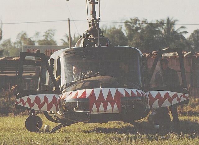 In the Sharks, you always left your boots on and tied if you were on "primary." As I lay back to enjoy the sounds, I fell fast asleep with my booted feet dangling over that footboard. Well, as per instructions in the script, some unit got into contact and that old horn sounded. "Aunk, aunk, aunk!" I leapt off that bed and maybe realized two steps before the message got to my brain that I had absolutely no feeling in my feet or lower legs. My body crumpled like dirty laundry and my face bounced off that 2" by 6" hootch floor like a well-aired basketball. I do believe I made it to the aircraft, 75 yards away on my hands and knees. A couple stitches in my chin by the Doc, after the scramble,