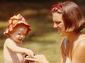 is pictured below at one-year-old with her mother Judy Shields.